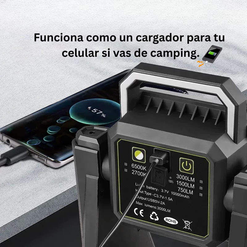 🚩 Funciona como un cargador portátil cuando vas de camping o actividades al aire libre.